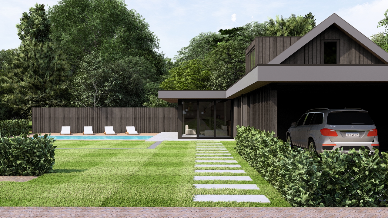 Dit buitenverblijf is een voorbeeld van hoe wij moderne houtbouw combineren met comfort, duurzaamheid en design. Ziet u zichzelf hier al genieten van lange zomerdagen aan het zwembad, of werken in een stijlvol kantoor aan huis?